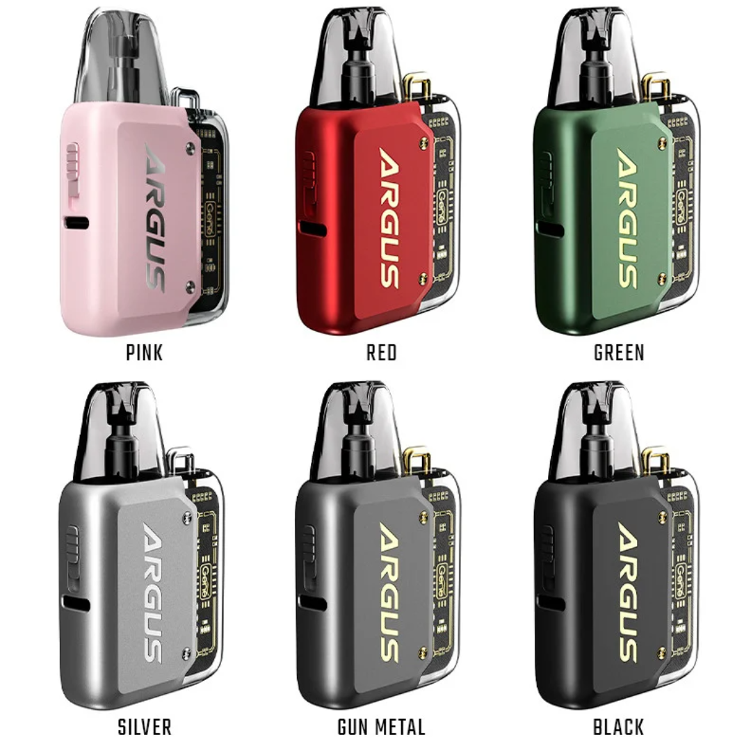 Check out the VOOPOO Argus P1 20W Pod System, featuring a 800mAh battery, 5-20W output range, and delivers exceptional vapor from the 0.7ohm or 1.2ohm pod. Constructed from durable zinc-alloy, the chassis of the Argus P1 Pod System is lightweight but resilient to light falls and drops. In addition, the 0.7ohm and 1.2ohm Argus Pods are leak-free and can hold up to 2mL of your favorite eJuice or nicotine salts. Furthermore, the Argus P1 Kit offers an airflow adjustment switch, allowing the user to alter the airflow to the desired amount.